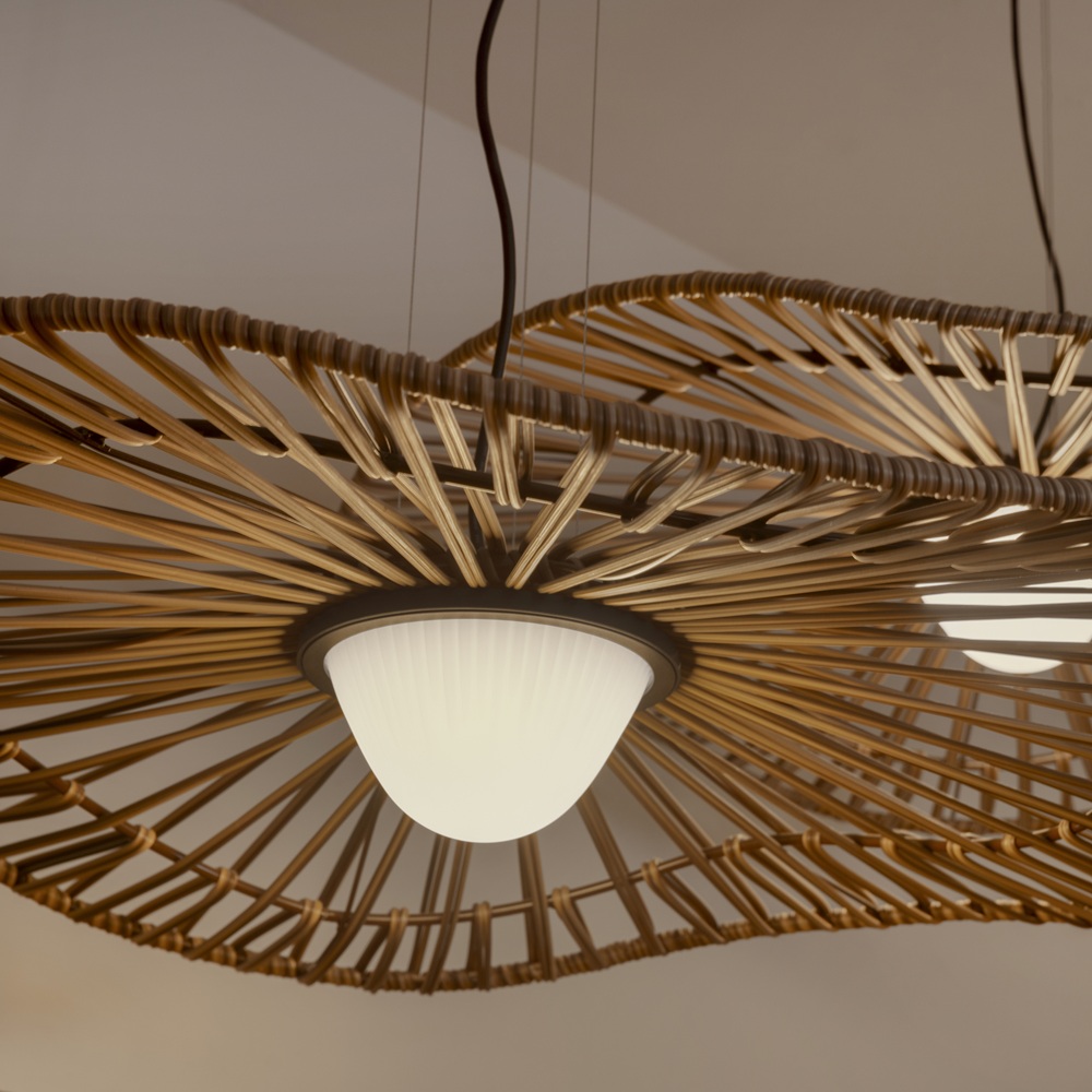Material: Aluminio con pantalla tejida a mano con fibra de polietileno sintética