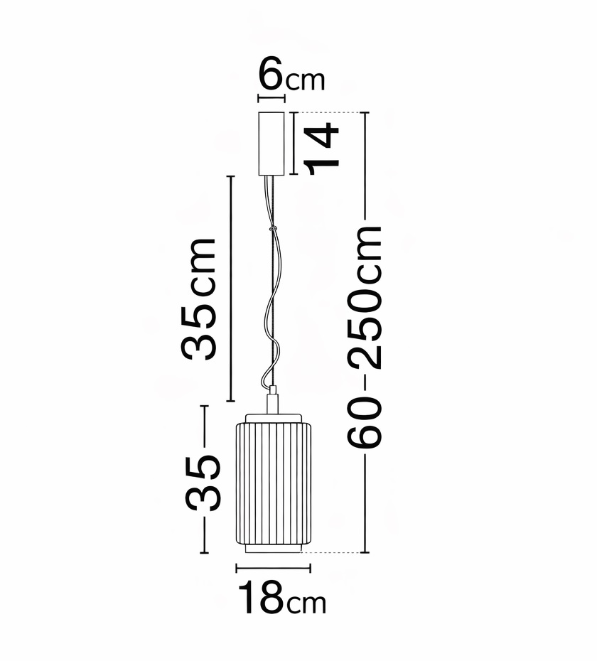 Alto: 35cm Altura máxima: 250cm Diámetro: 18cm Material: Aluminio y cristal